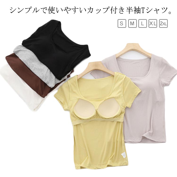 半袖Tシャツ カップ付き レディース レディースファッション 通販 ブラック ホワイト ブラウン ライトベージュ イエロー グレー S M L XL 2XL
