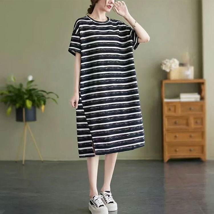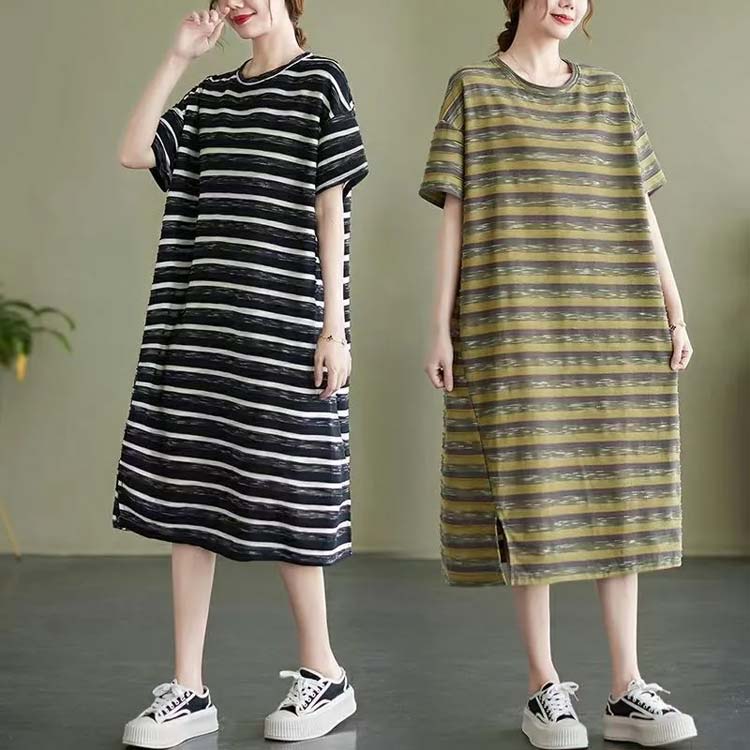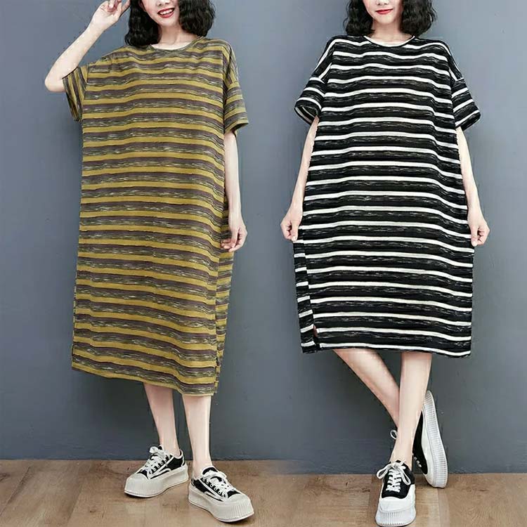 レディース 体型カバー 膝下 Tシャツ ワンピース 割引 カーキ ブラック L XL 2XL 3XL 4XL 5XL