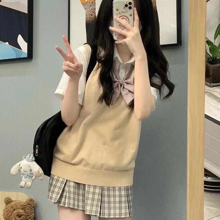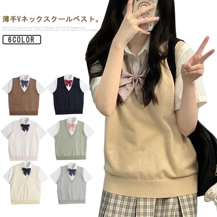 ニットベスト スクールベスト 制服 涼 レディースファッション 豊富な品揃え イエロー オフホワイト グレー グリーン キャラメル ネイビー S M L XL 2XL 3XL