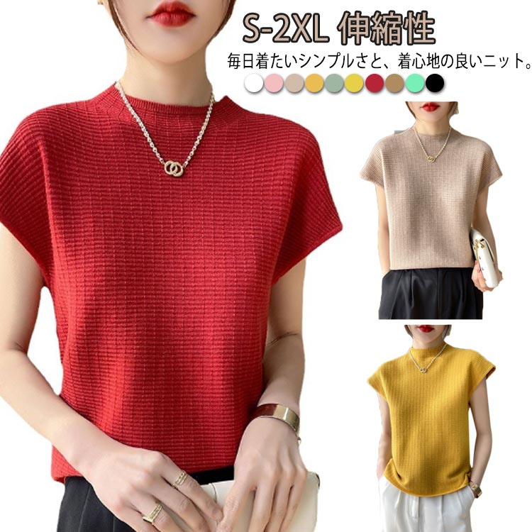 半袖 ニット レディース 半袖ニット トップス ニット セーター セーター 豊富 ホワイト ピンク ライトキャメル イエロー グリーンA グリーンB レッド キャメル グリーンC ブラック S M L XL 2XL