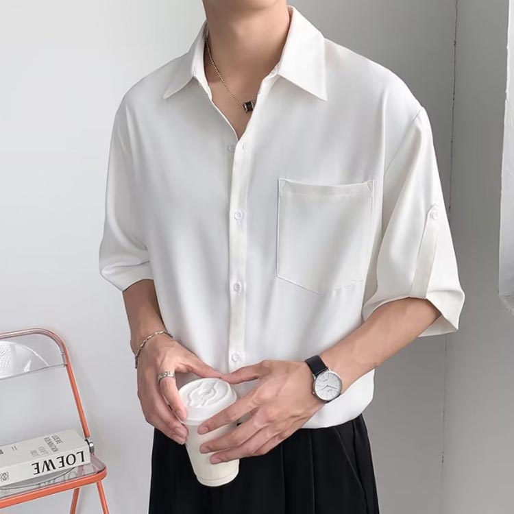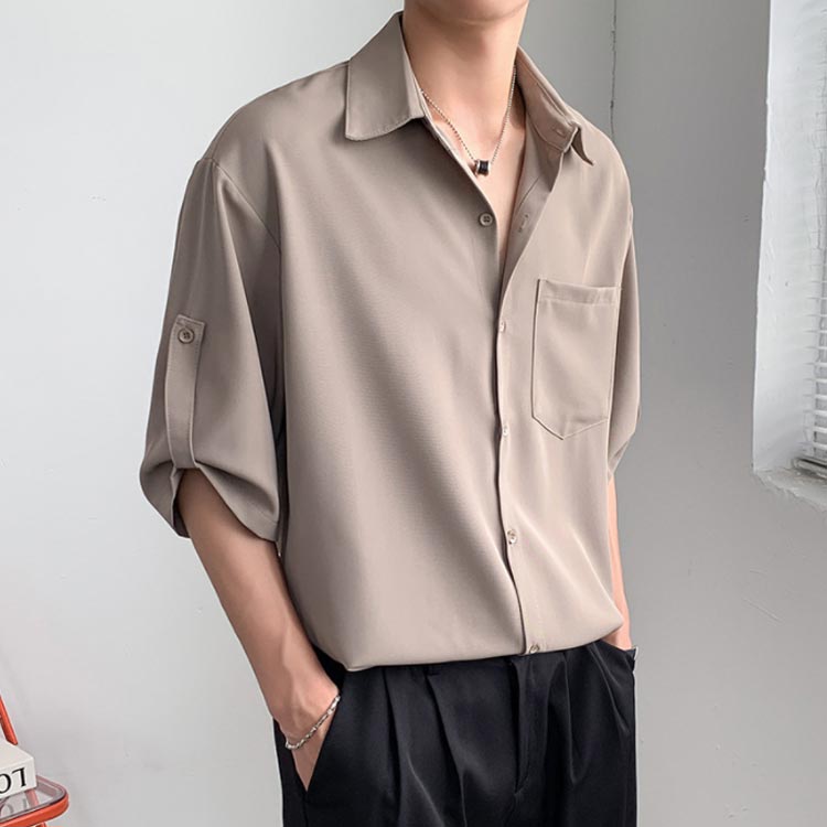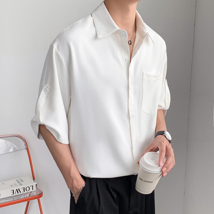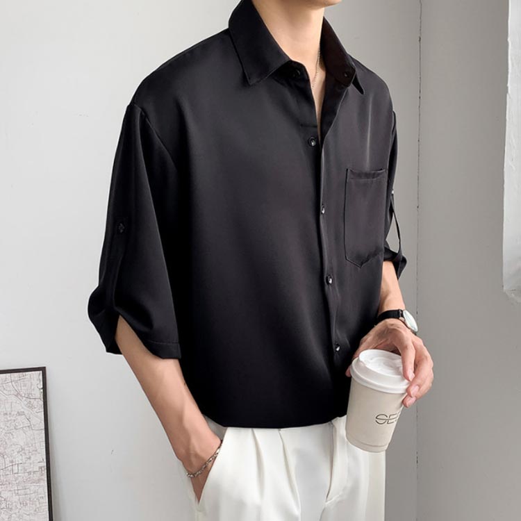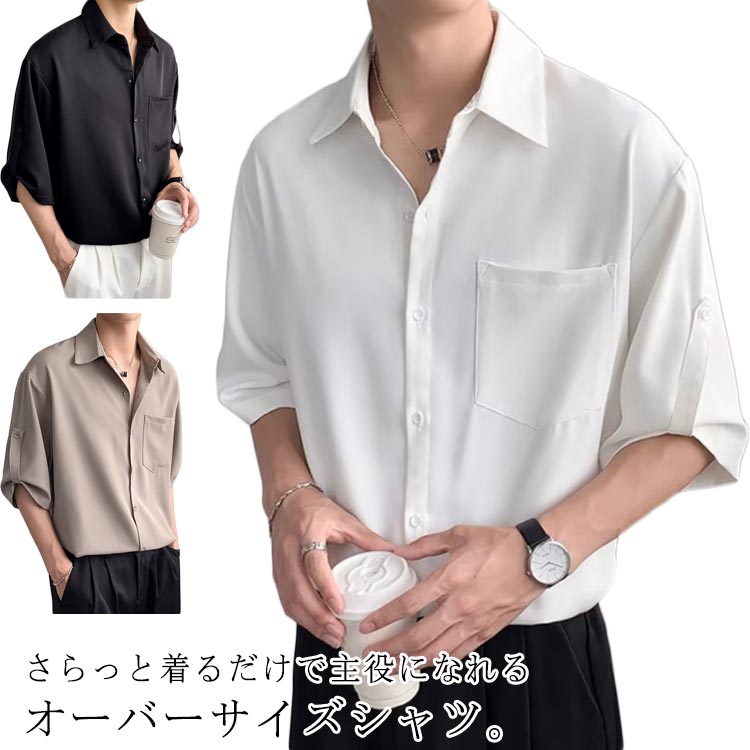 シャツ 夏服 涼感 軽い アイスシルク トップス カジュアルシャツ 新作 ブラック ホワイト ダークベージュ M L XL 2XL 3XL