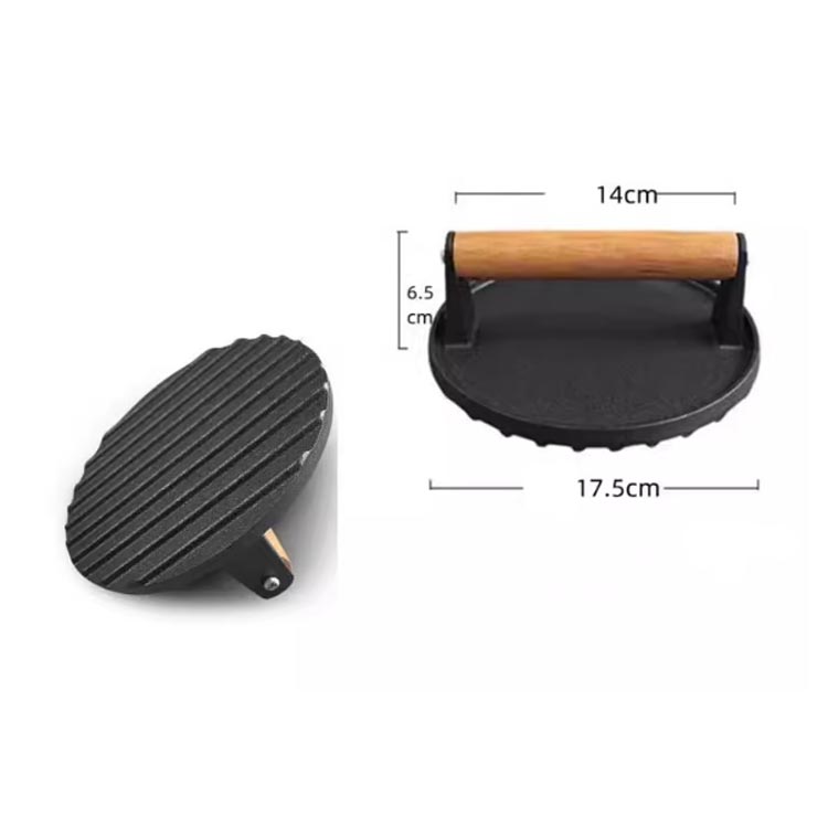 ステンレス ハンバーガープレス 大型 ミートプレス 重し 鋳鉄 ベーコンプレス ハンドプレス プレス機 料理 鋳物 肉プレス グリルミートプレス 木製ハンドル 波型 海鮮 ホットサンド 錆びない