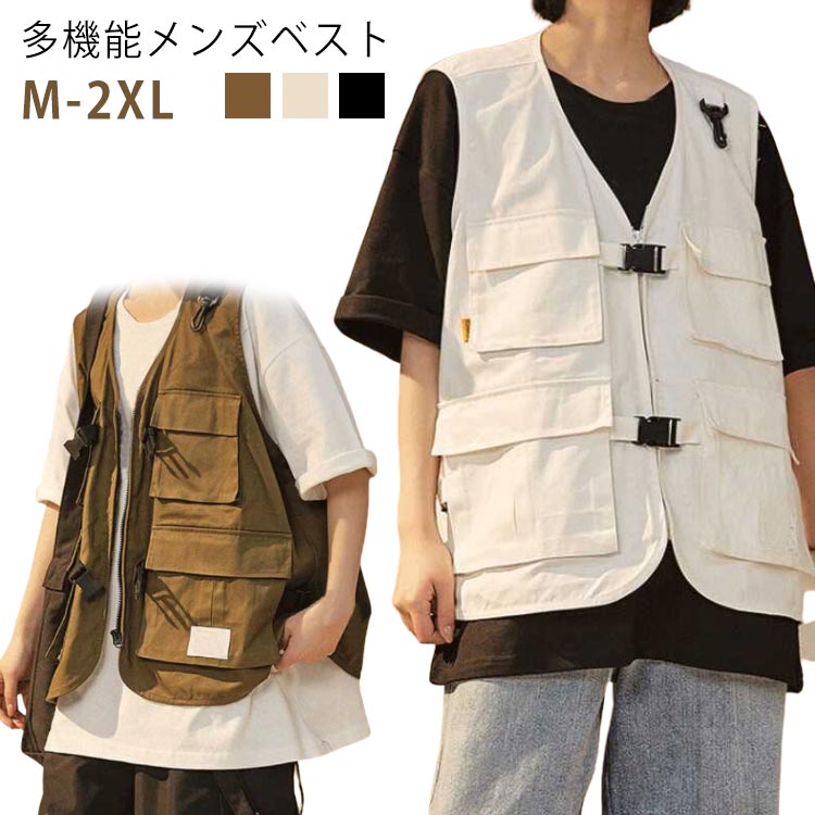 お釣りベスト メンズ 春夏 アウトドア トップス ベスト ジレ 豊富な品揃え グリーン ブラック ベージュ M L XL 2XL