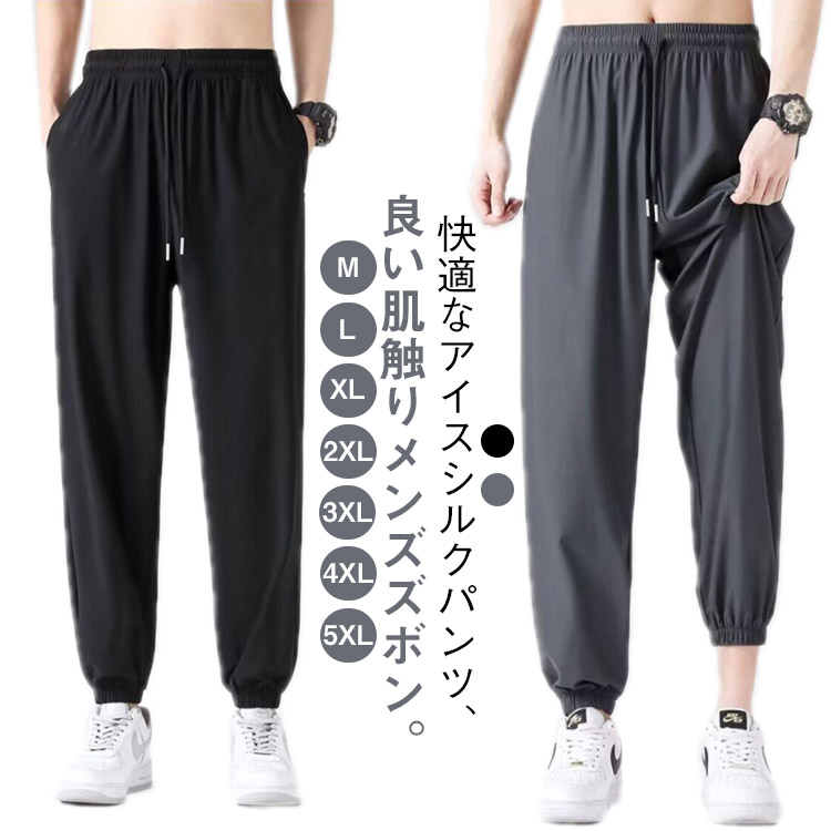 無地 アイスシルクパンツ 春 アイスシ メンズファッション 割引 ブラック ブラック(裾絞り) グレー グレー(裾絞り) M L XL 2XL 3XL 4XL 5XL