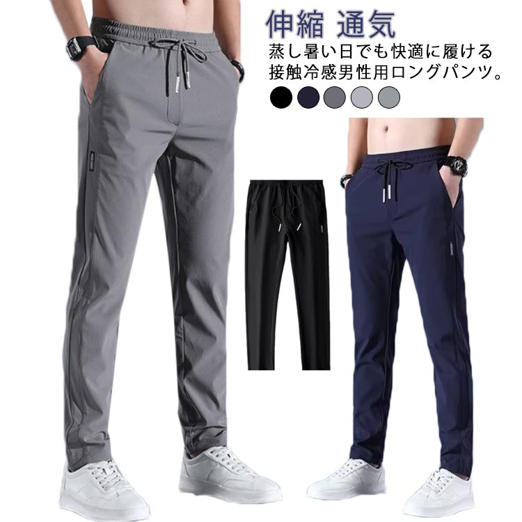 秋 アイスシルクパンツ メンズ 夏 春 冷感 伸縮 ゴルフパンツ 涼しい 通気 ストレッチ 薄手 イージーパンツ ロングパンツ ゆったり スポーツパンツ 無地 チノパン 大 部屋着