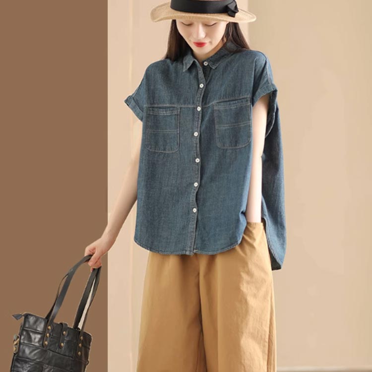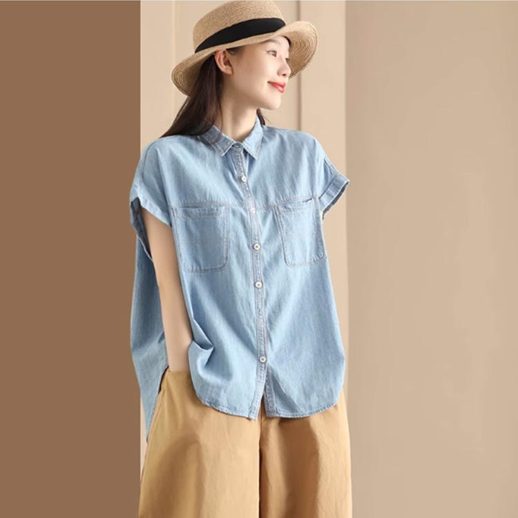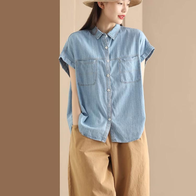 ブラウス きれいめ 通学 夏 シャツブ トップス シャツ ブラウス 割引 ライトブルー ダークブルー
