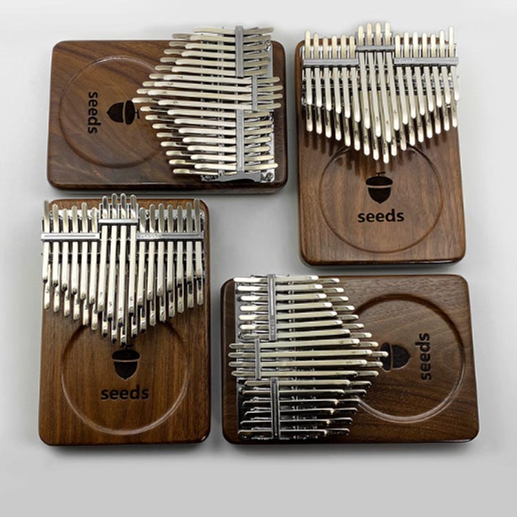 カリンバ自体ただ2.5センチの厚さがあって、大きさは通常の17音カリンバと同じです。カリンバの周りはよく磨かれていて、手持ちしやすい。