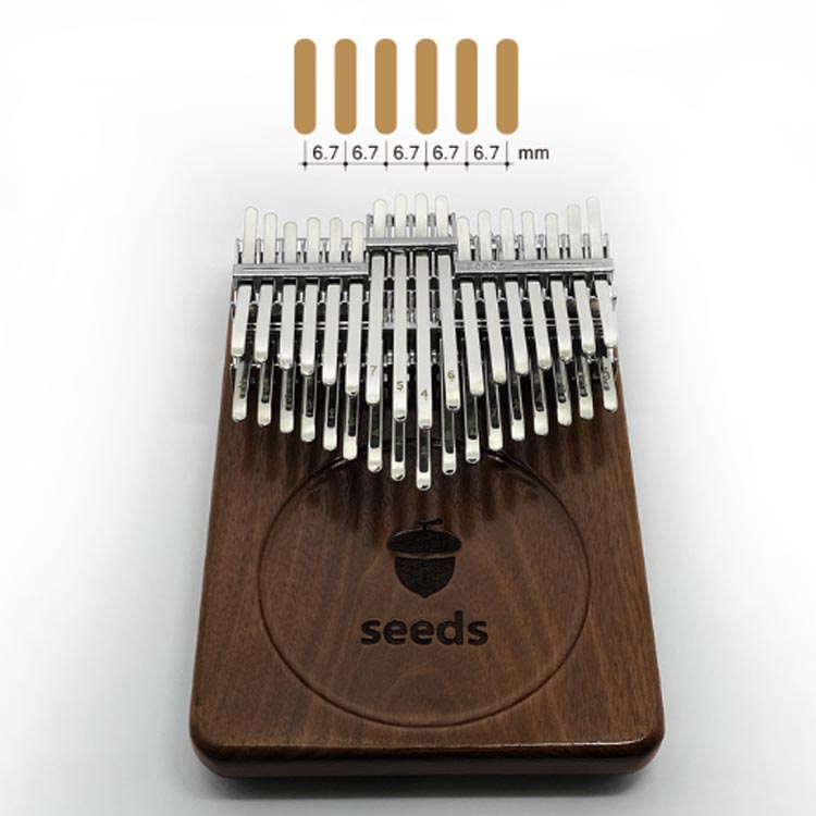 上は半音階、ピアノブラックキーに似ているような機能でオクターブを演じることができます、音域が普通のカリンバより幅広くなります。