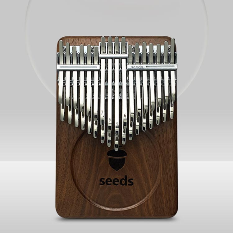 下のキーボードは標準のC調にマッチしています。また、通常17音の上に半音階を追加されたので、34音の2層カリバーは伝統的な17音と21音カリンバより音域が豊かにしています。