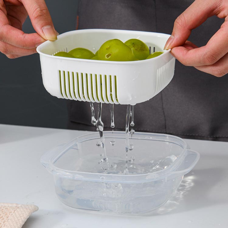 【便利で使いやすい構造!】電子レンジOKのふたは開けやすい取っ手付きで、容器には耳が付いているため、電子レンジで加熱後、火傷せず運ぶことができて安心。 分離式ざる付きで電子レンジで加熱する際、蒸気が内部で循環する構造。 分離式ざるは足が付いているため、お料理とつゆの分離もでき、保存だけでなくお料理にも使えて便利。