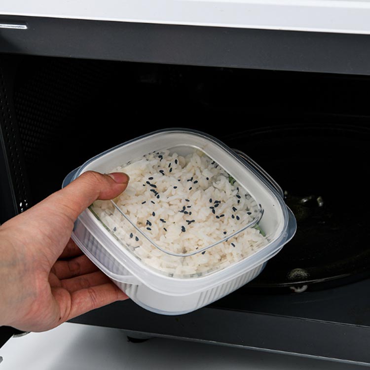 【冷凍用、保存用、レンジ用】-20℃~140℃まで耐冷温度:暖かいご飯をそのまま容器に入れる事ができ、冷蔵にも冷凍にも便利。冷たいご飯は、ふたをしたまま電子レンジで温める事ができ、 工夫した内部の取り出し式ざるの構造のおかげで、 電子レンジでご飯を加熱している間、蒸気が内部で循環しご飯をふっくら仕上げます。