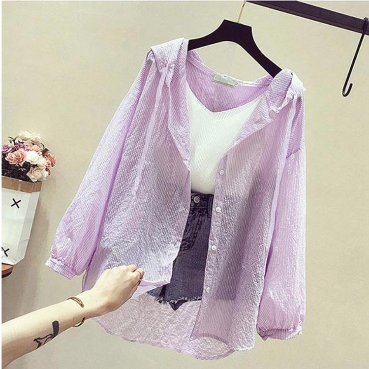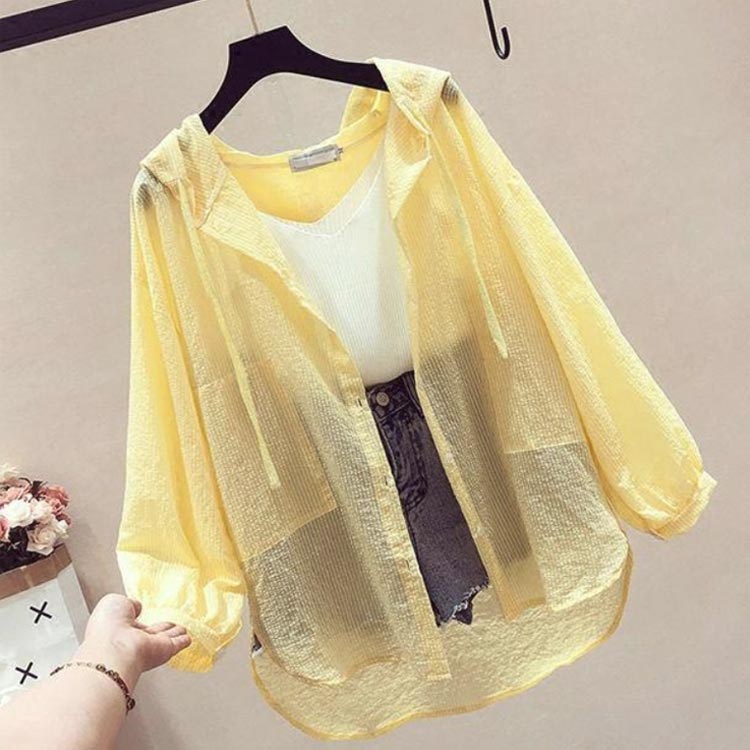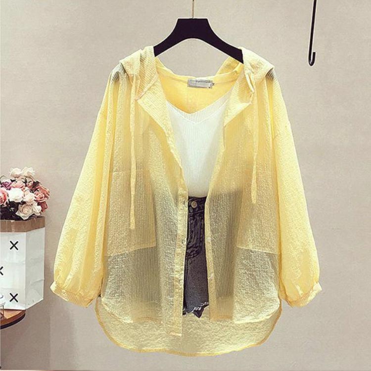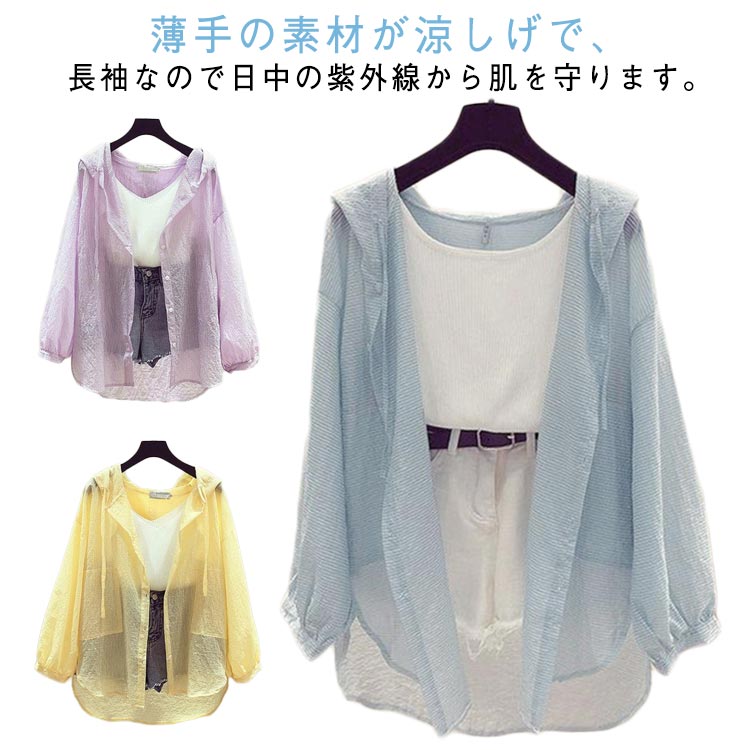 シアーパーカー UVカット 前開き u トップス パーカー 新作 イエロー ピンク ブルー パープル M L XL 2XL 3XL