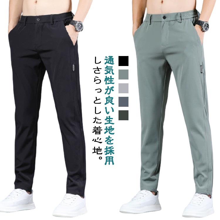 アイスシルクパンツ 春 ストレッチ ロ メンズファッション 続々登場 ブラック グリーン グレー ダークグレー カーキ 28 29 30 31 32 33 34 36 38