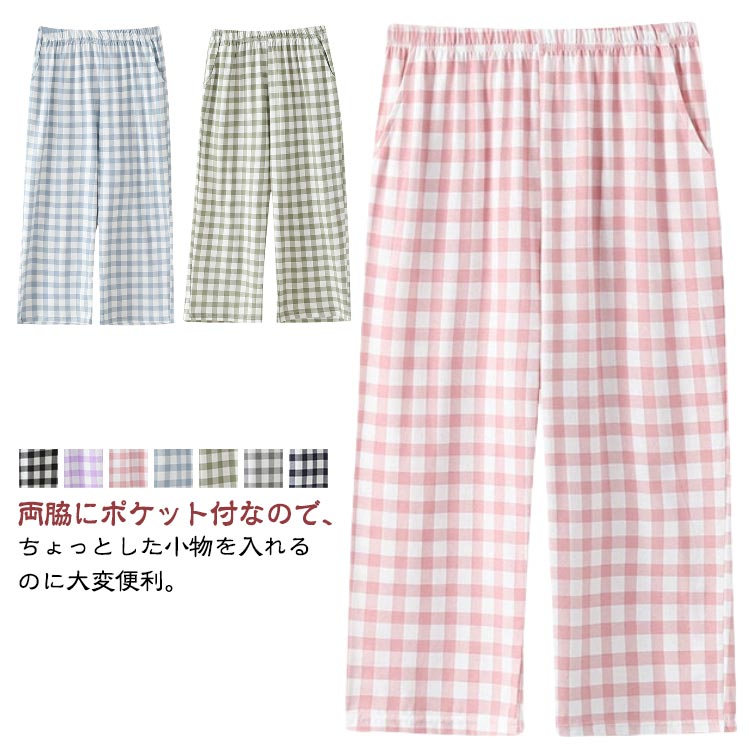 レディース ステテコ 肌着 春夏 部屋着 ルームパンツ ショートパンツ ルームウェア 下着 ハーフパンツ リラックス ズボン チェック柄 ひざ下丈 ゆったり ポケット付き コットン