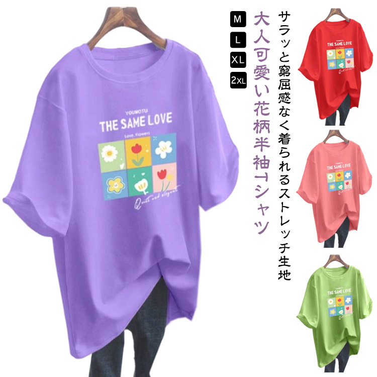 カットソー レディース Tシャツ 体型 トップス Tシャツ カットソー 通販 ホワイト パープル レッド ピンク ブルー グリーン ブラック M L XL 2XL