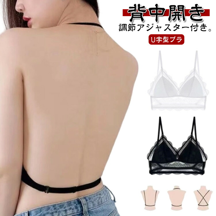背中開き ブラジャー ブラトップ バッ レディース インナー 下着 ブラジャー 人気 ホワイト ブラック
