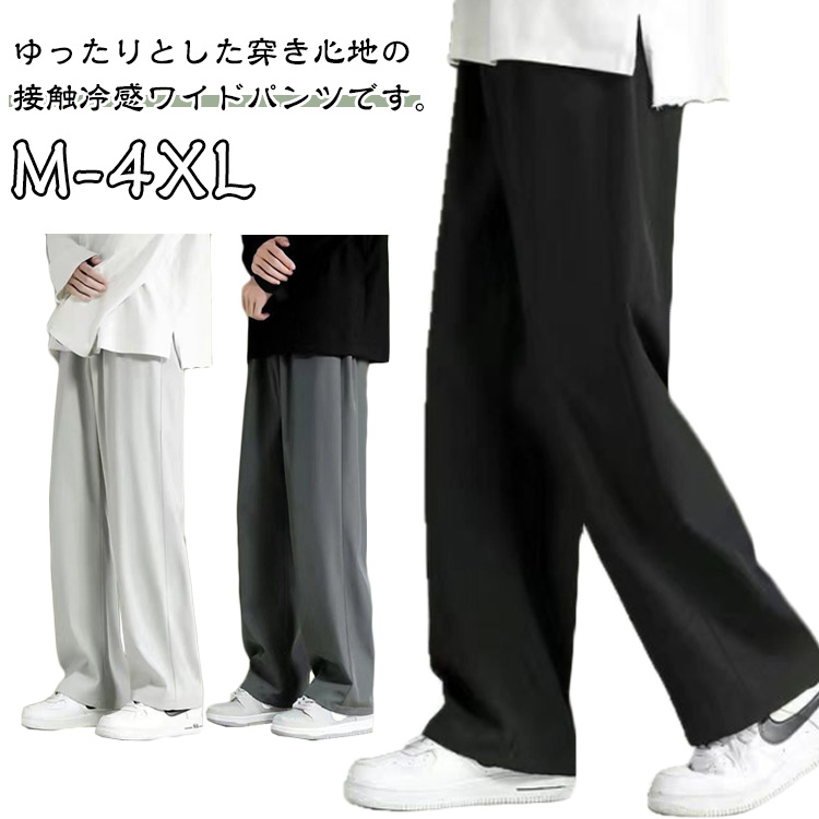 ワイドパンツ 冷感 長ズボン メンズ ズボン パンツ 39%Off ブラック ダークグレー グレー M L XL 2XL 3XL 4XL
