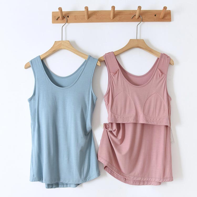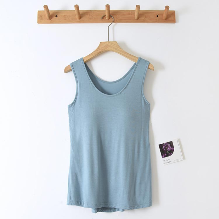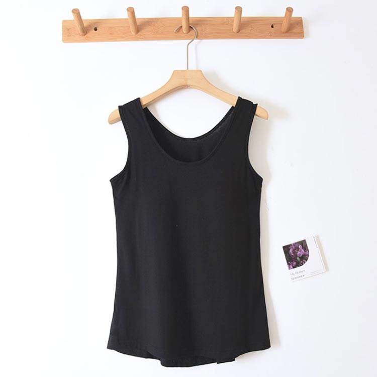ブラカップと半袖が一体型になったカップ付きタンクトップ。