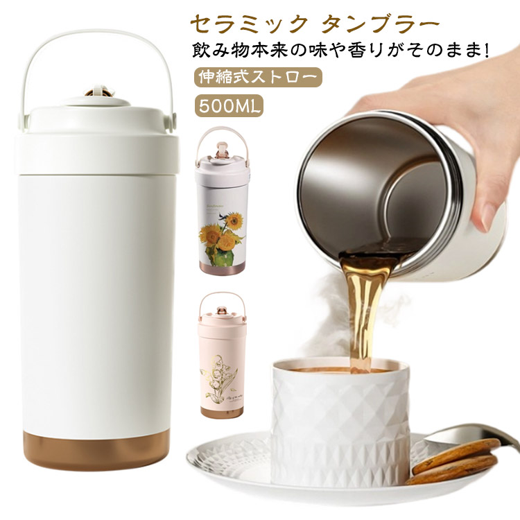 マグボトル セラミック セラミックコーティング タンブラー 直飲み ストロー付き 水筒 500ML ストロー付きタンブラー ストロー 保冷 持ち運び ステンレスマグカップ 保温