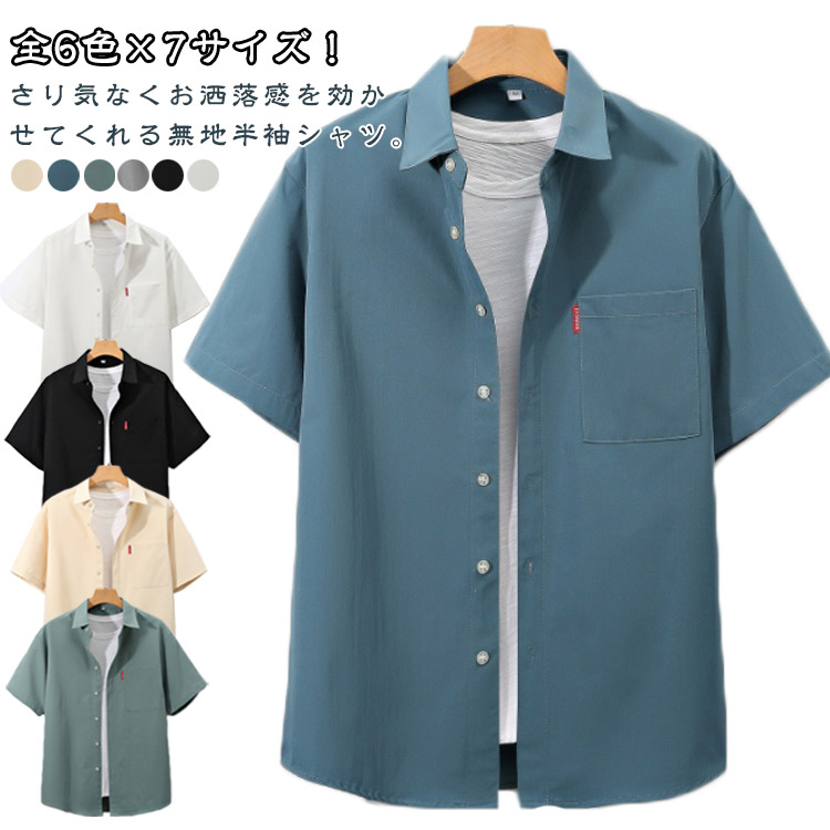 全6色×7サイズ カジュアルシャツ 無地 メンズ 胸ポケット メンズシャツ 大きいサイズ 半袖 薄手 半袖シャツ 夏服 ビジネス ゆったり シンプル 夏物 ギフト 普段着 部 父の日