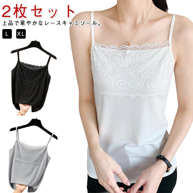 かわいい レディース カップなし レー レディースファッション 人気 ホワイト(2枚セット) ブラック(2枚セット) グレー(2枚セット) L XL