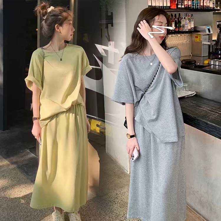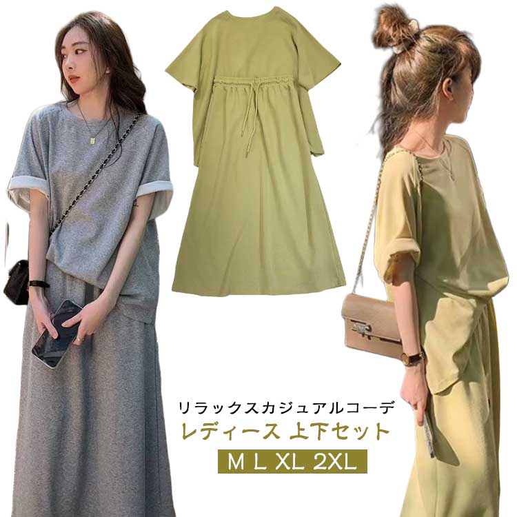 スカート おしゃれ 上下 半袖 セット レディースファッション 豊富 グレー グリーン M/上下セット L/上下セット XL/上下セット 2XL/上下セット