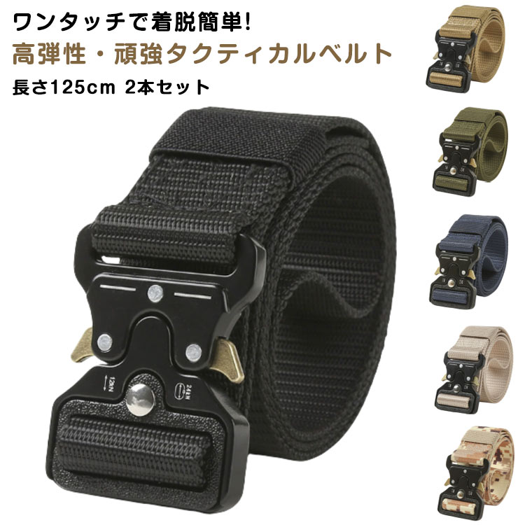 ワンタッチで着脱簡単! 高弾性・頑強タクティカルベルト 長さ125cm 2本セット