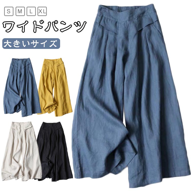 ワイドパンツ ロングパンツ レディース ボトムス パンツ 続々登場 ホワイト ブラック イエロー ネイビー S M L XL