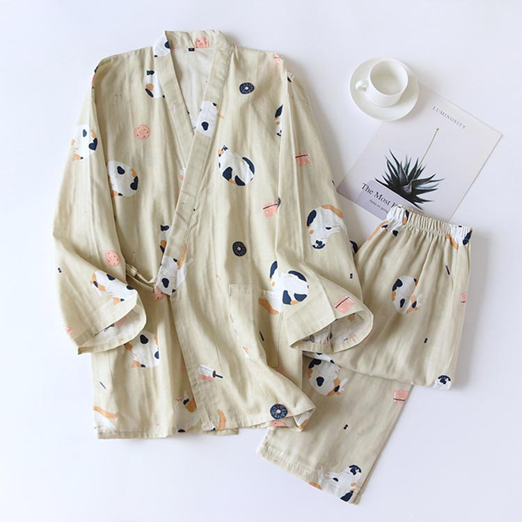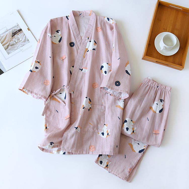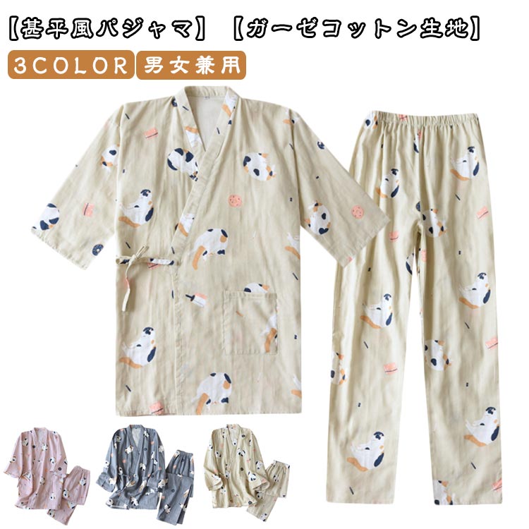 【甚平風パジャマ】【ガーゼコットン生地】【3color】【男女兼用】