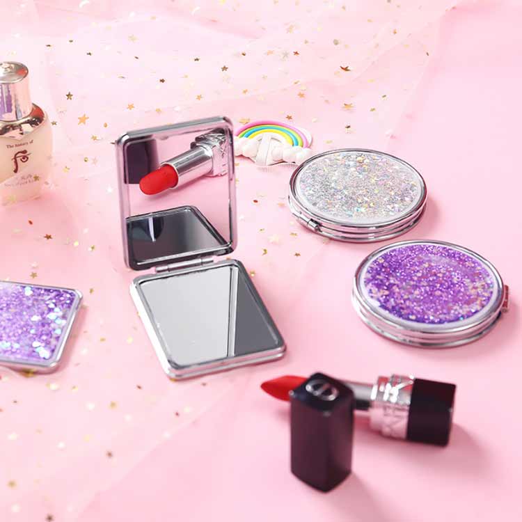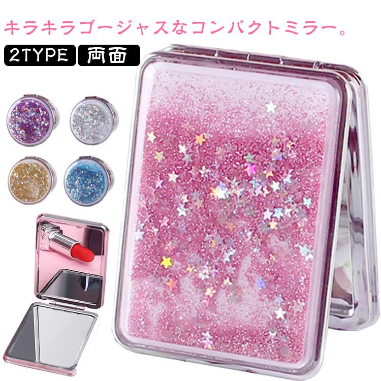 コンパクトミラー 手鏡 流れる 円形 バッグ 小物 ブランド雑貨 お買い得 ピンク イエロー ブルー シルバー パープル 円形 長方形
