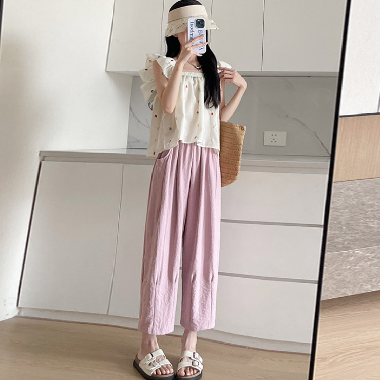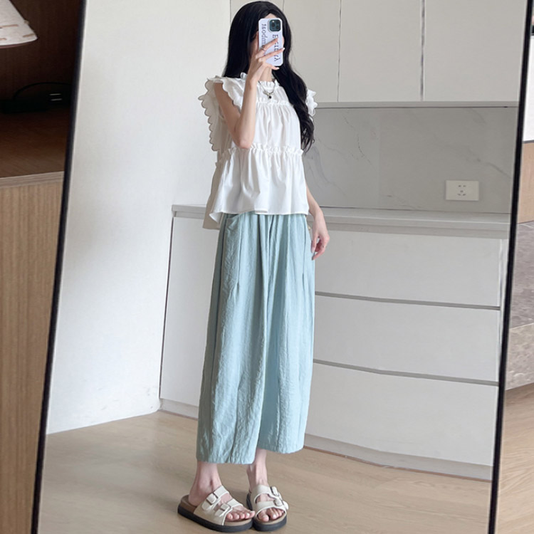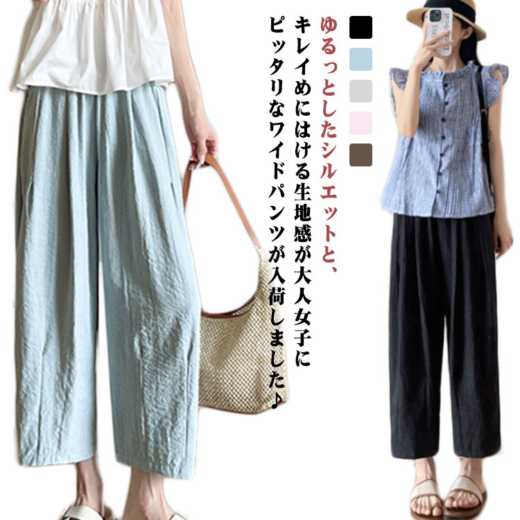 ワイドパンツ 9分丈 冷感 部屋着 春 ボトムス パンツ 続々登場 ブルー ホワイト ブラック ピンク ベージュ M L XL