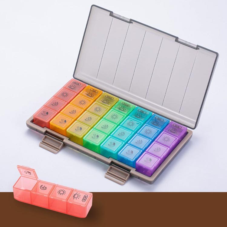 薬 軽量 箱 ピルケース 1日3回 一 マルチカラー コーヒー ブルー グリーン 28個仕切りタイプ 21個仕切りタイプ