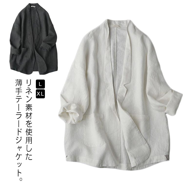 レディース ゆったり テーラード 薄手 コート ジャケット 豊富な品揃え ホワイト ブラック L XL