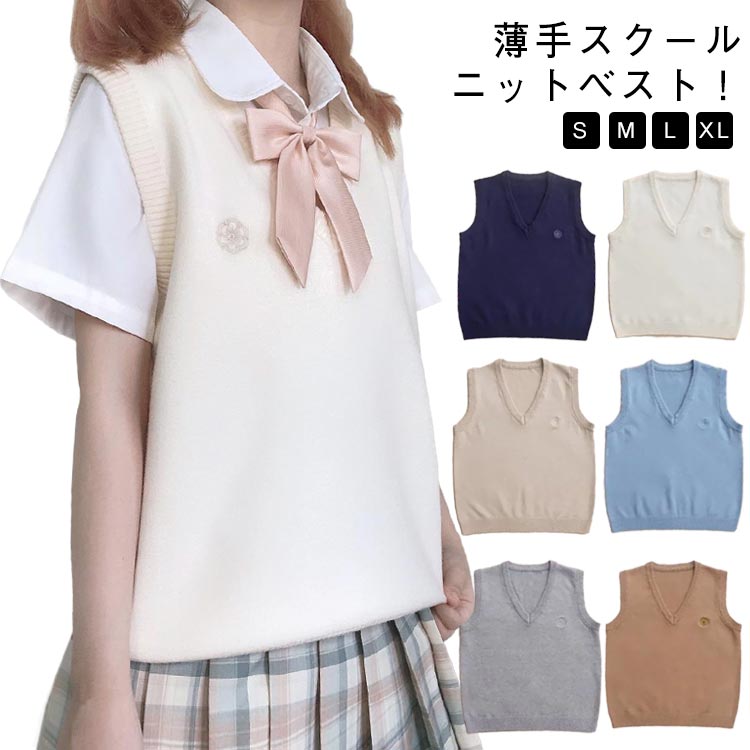 ニットベスト シンプル スクールセータ レディースファッション 豊富 ネイビー ホワイト ベージュ ブルー グレー ブラウン S M L XL