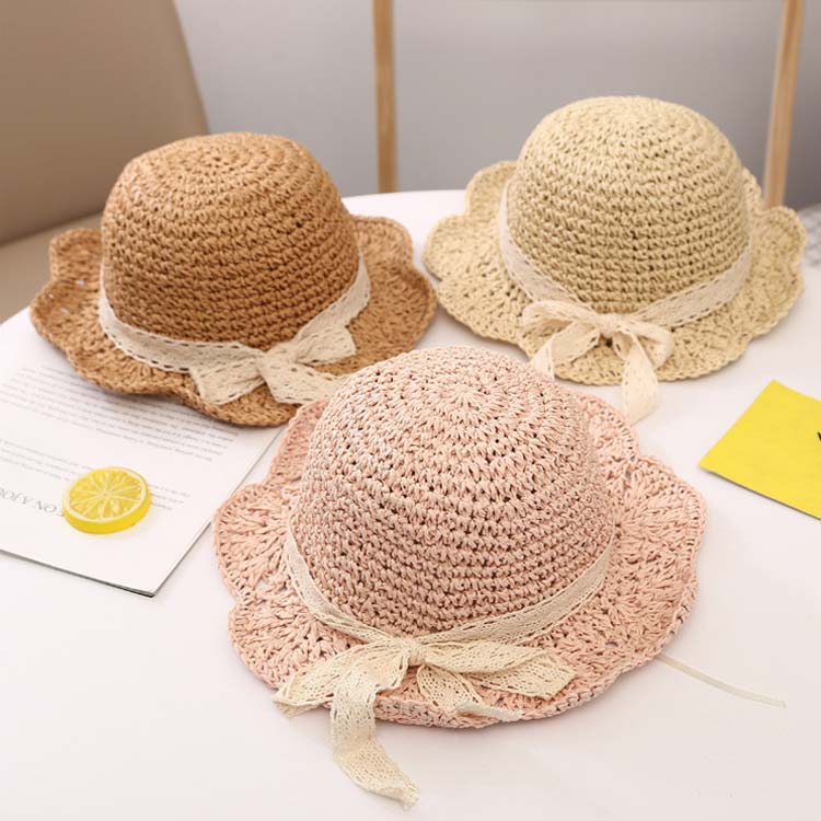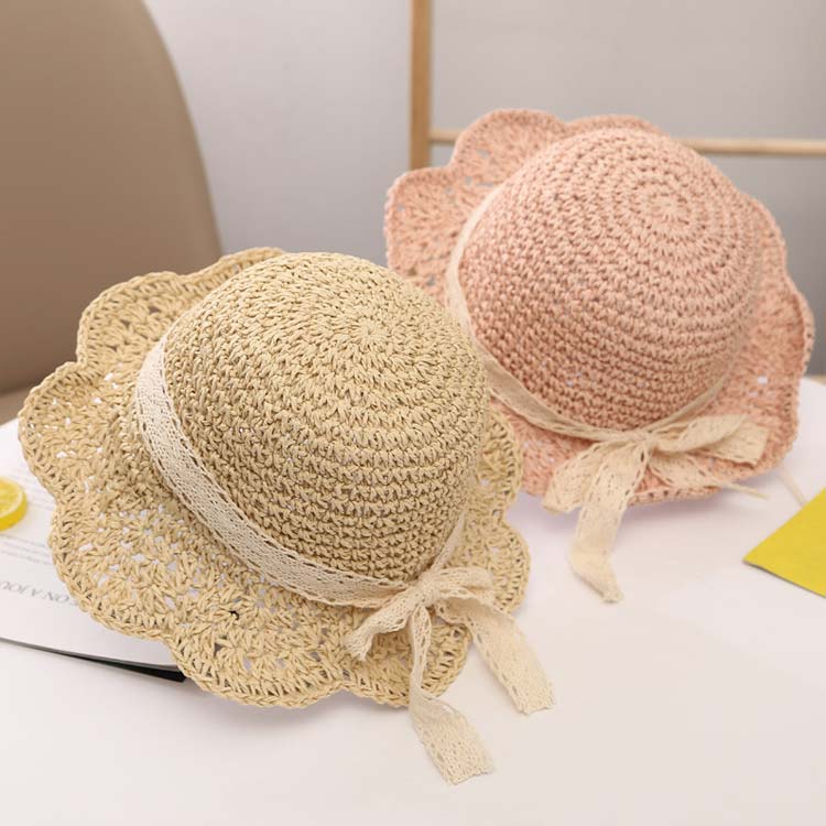 UVカット 春 麦わら帽子 帽子 子供 キッズ 帽子 麦わら帽子 新作 ブラウン ベージュ ピンク 50-52cm 46-48cm