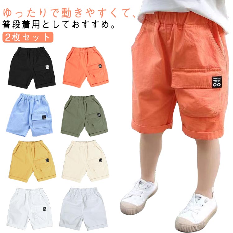 子供服 無地 ウエストゴム ジュニア キッズ ボトムス パンツ 新作 ブラック(2枚セット) ホワイト(2枚セット) オレンジ(2枚セット) ベージュ(2枚セット) イエロー(2枚セット) グリーン(2枚セット) ブルー(2枚セット) 110 120 130 140 150 160