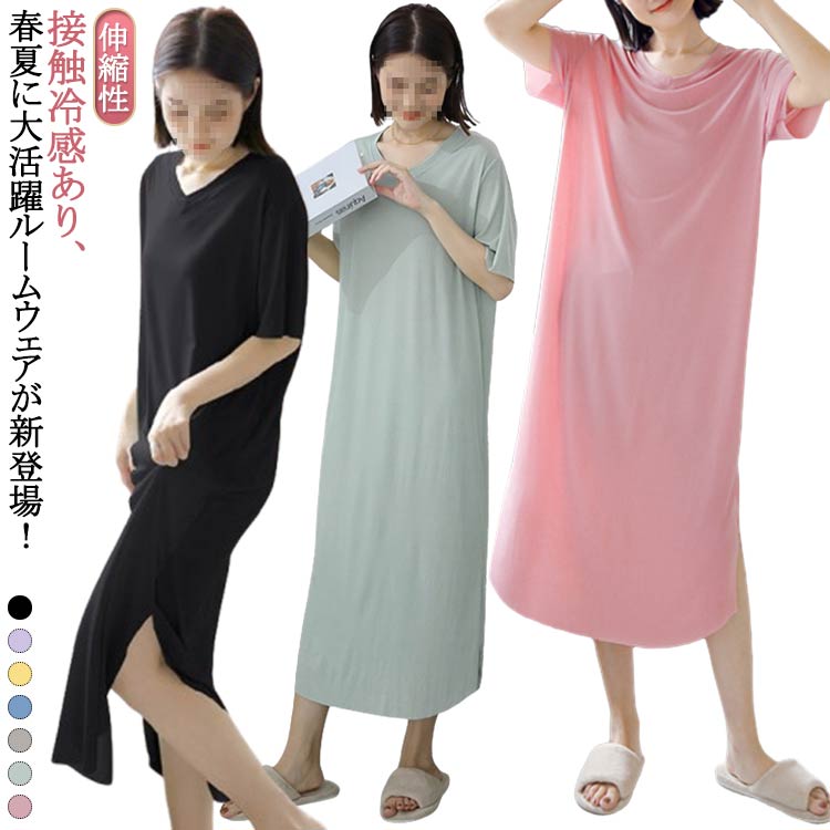 パジャマ 寝間着 夏 半袖 ルームウェ ブラック パープル ブルー イエロー グリーン グレー ピンク L XL