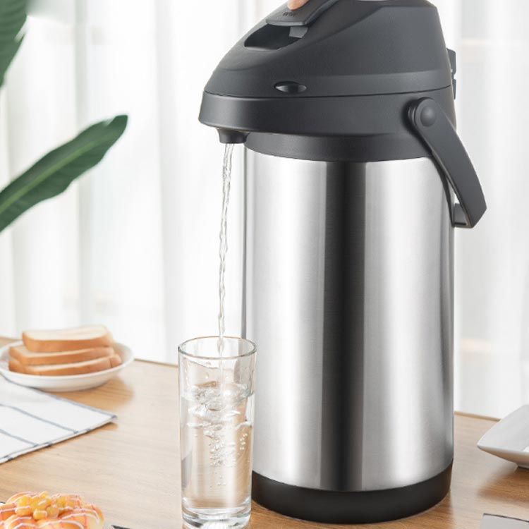 広口タイプなので、使いやすくお手入れも簡単なステンレスエアーポット。