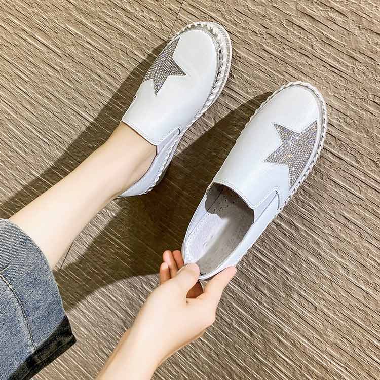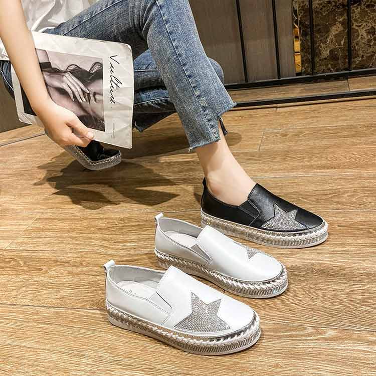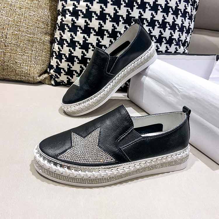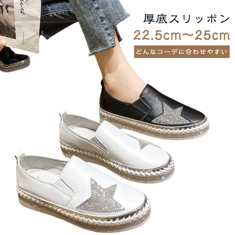 軽量 キラキラ 通気性 星柄 厚底スリッポン シューズ 3cm レディース ぺたんこ ラインストーン フラットシューズ 紐なし 厚底 痛くない 履きやすい 蒸れにくい ローカット 美 疲れにくい