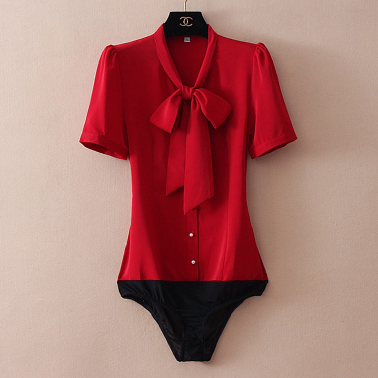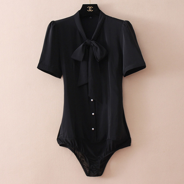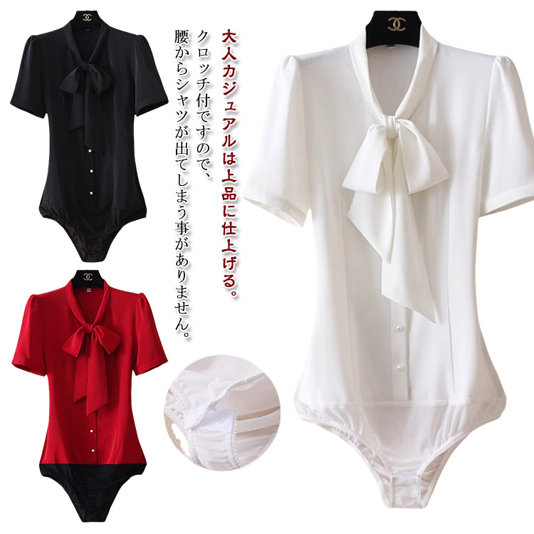 シアースリーブ ドッキングシャツ ボウタイシャツブラウス