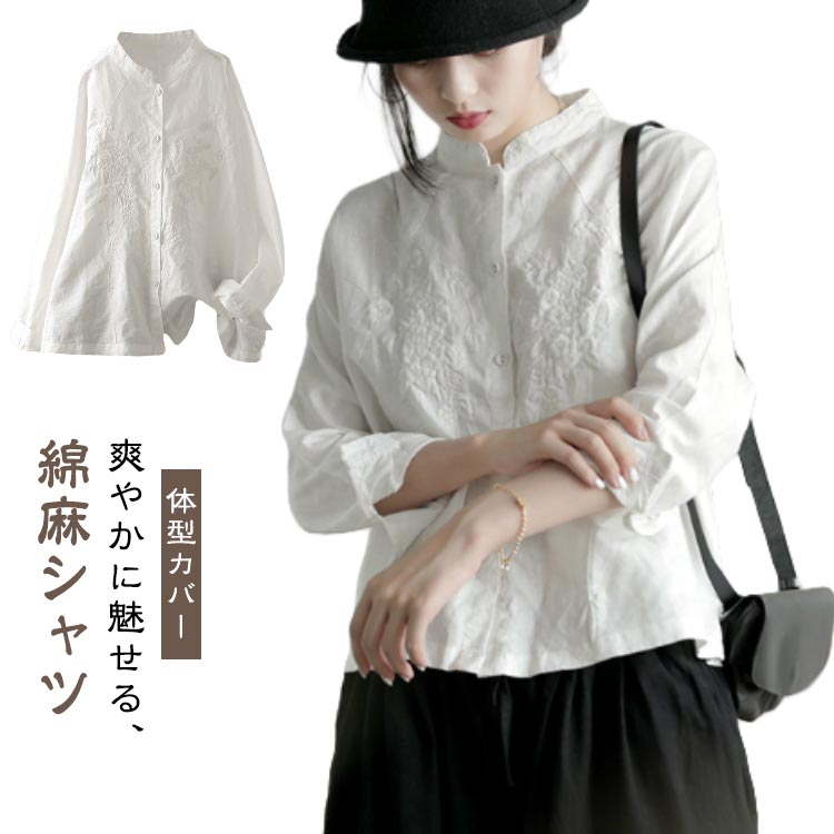 コットン レディース 長袖 夏 シャツ トップス シャツ ブラウス 続々登場