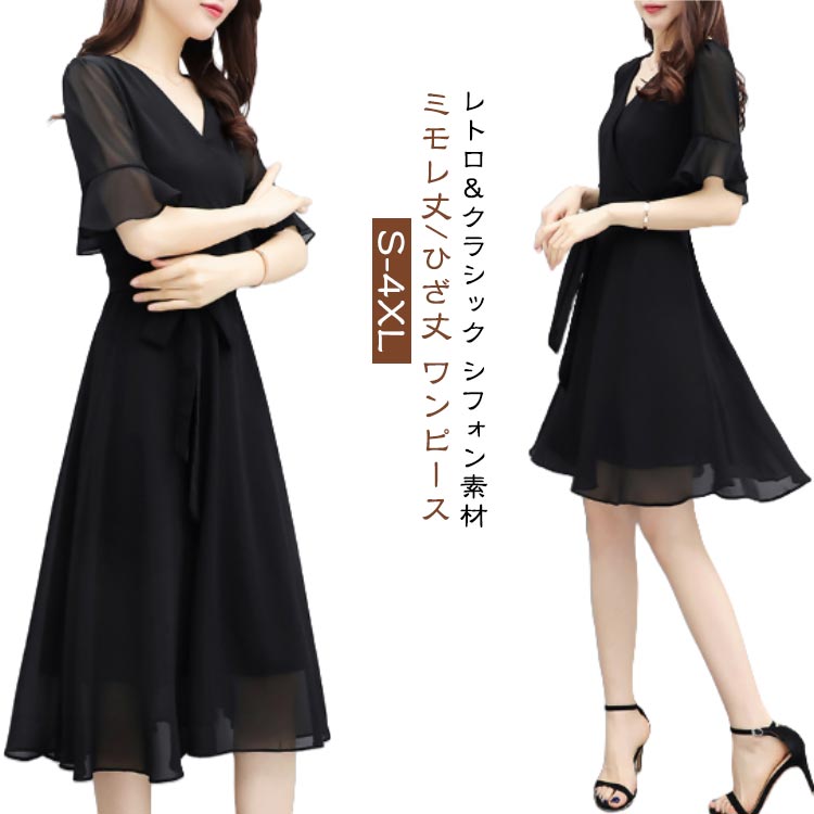 オフィスカジュアル 秋 ワンピース き ワンピース 割引 ブラック/ミモレ丈 ブラック/ひざ丈 S M L XL 2XL 3XL 4XL
