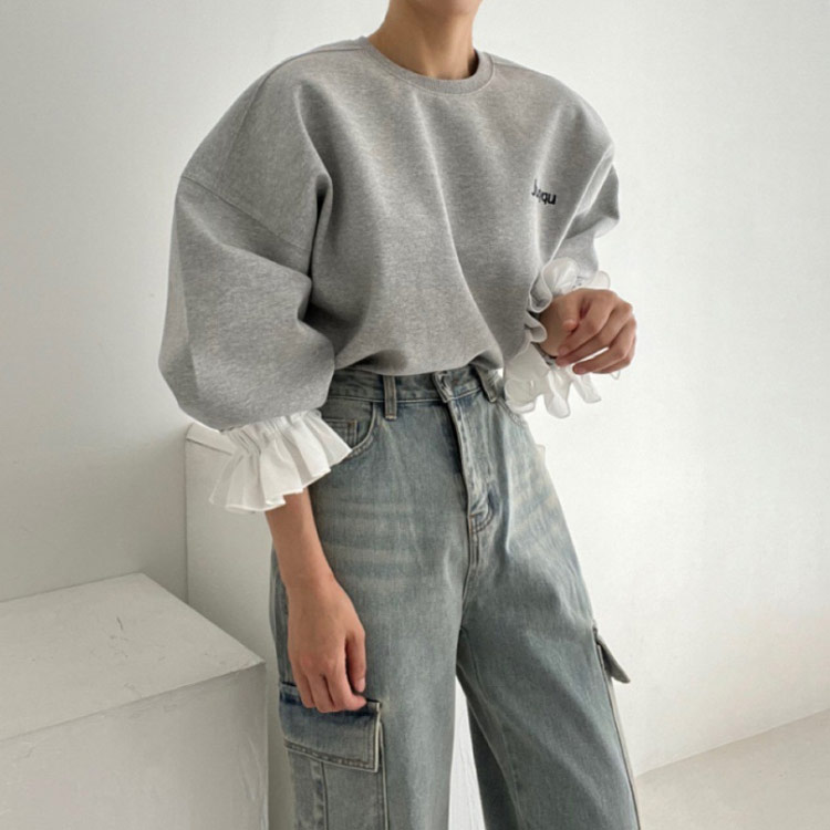 春 トップス スウェット 重ね着 レデ トップス スウェット トレーナー 特集 グレー グリーン