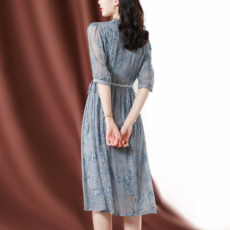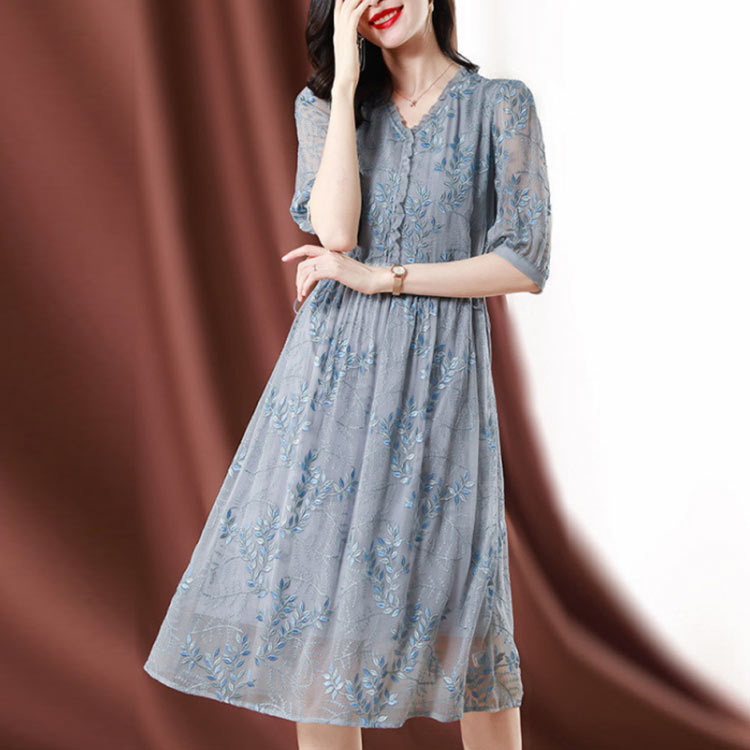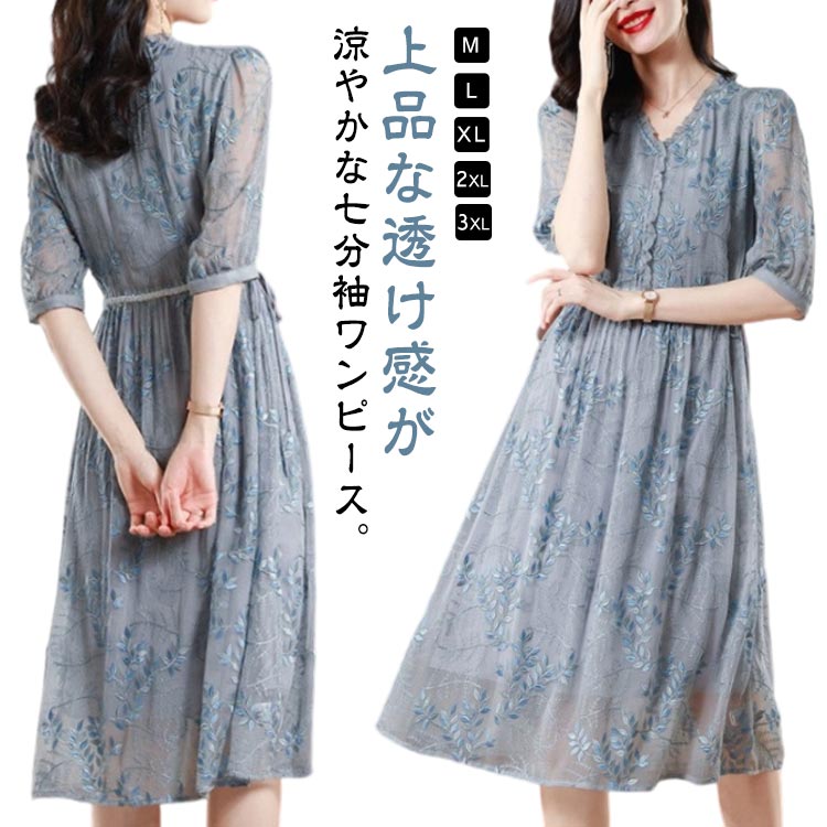 ワンピース 花柄 七分袖 シルク混 透 ワンピース 42%Off M L XL 2XL 3XL