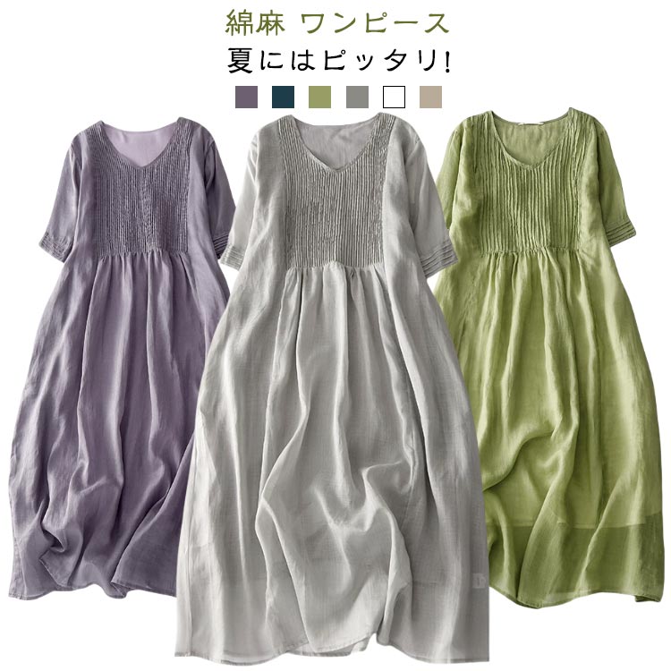 大人 半袖 女性 薄手 OL レディー ワンピース 42%Off パープル ブルー グリーン グレー ホワイト ベージュ M L XL 2XL