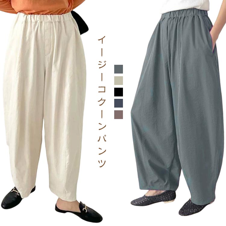 UVカット カジュアル コクーンパンツ ボトムス パンツ 44%Off グレーブルー ベージュ ブラック キャメル モカ M L