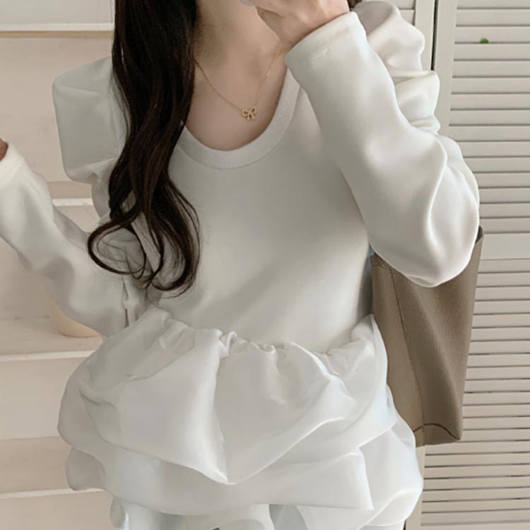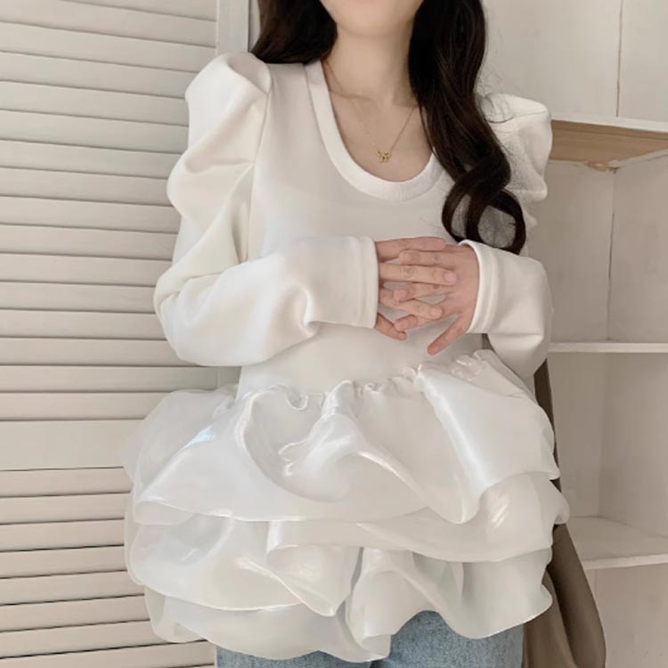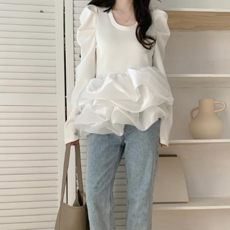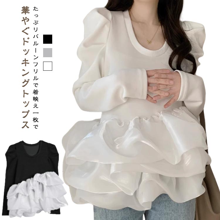 パワーショルダー バルーンフリル Uネ トップス シャツ ブラウス 42%Off ホワイト グレー ブラック
