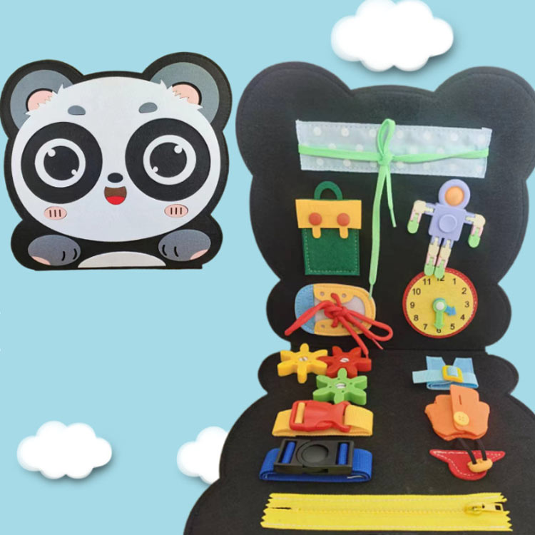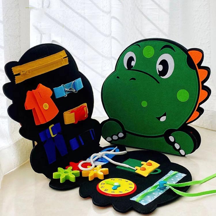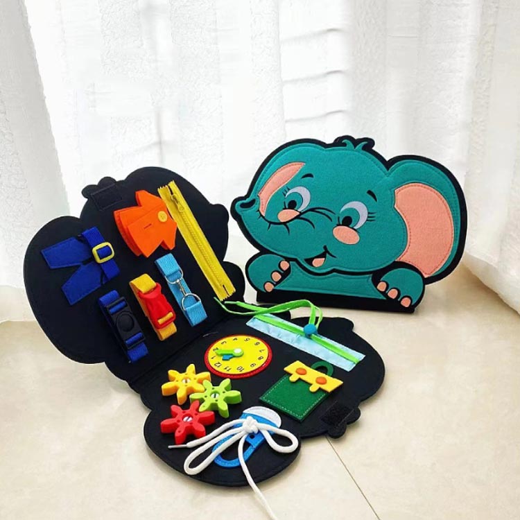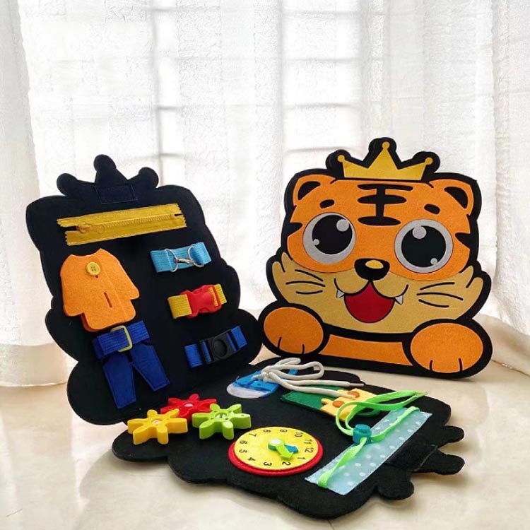 豊かなボタン、バックル、靴紐、ジッパーなどで遊べる、「ビジーボード」と呼ばれる知育用玩具です。一般に洋服についている留め具をまとめてあるオモチャで、子供の知力、創造性を刺激し、能力の開発に役立ちます。