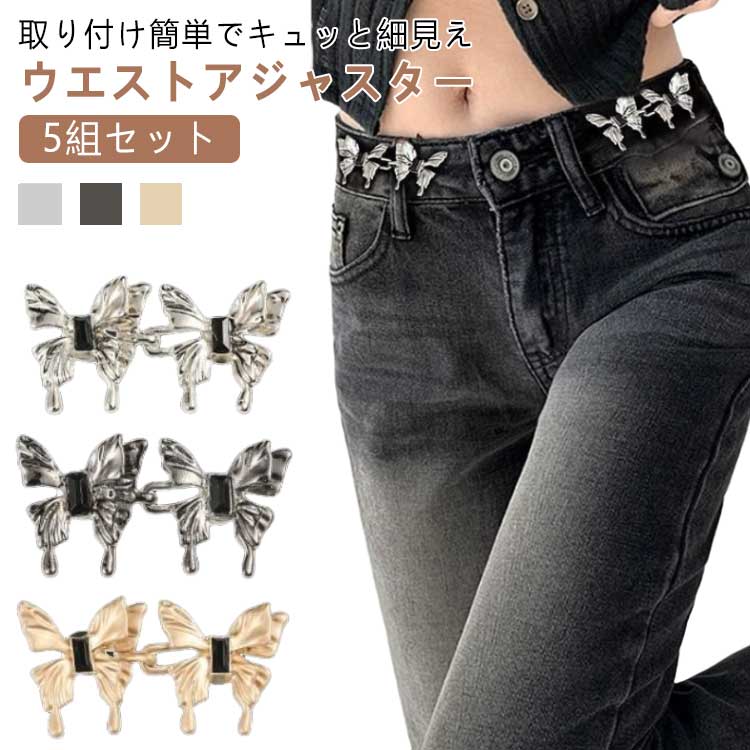 調整 アジャスター ウェスト ウェスト調整アジャスター バックル ウエストアジャスター 金具 調節 5組セット クリップ ウエスト調整ボタン ズボン ジーンズ 縮める 蝶型 ウエストバックル ガ ピン