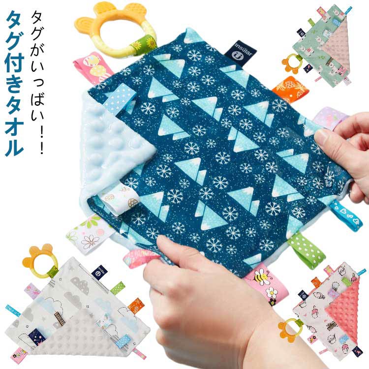 おもちゃ 歯固め付き ベビー よだれ拭き お遊びタオル 子ども 安全 タグ付きタオル タグタオル タオルハンカチ 視覚 遊びタオル 玩具 聴覚 タグ 子供 コットン ハンカチタオル タオル 綿 安心